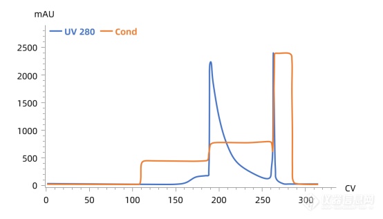 Protein L亲和层析介质可特异性结合bsAb的轻链区域。有必要留意一下的是,部分双抗片段对Protein L的亲和力显着高于完好bsAb。经过进步洗脱缓冲液的pH值,可大大下下降分子量杂质的洗脱份额。选用NMab Prot L亲和层析介质,经过步级pH洗脱实现方针双抗的高效别离——完好bsAb在特定pH条件下被挑选性洗脱,而低分子量双抗片段则因结合力较强而保留在介质上。终究经过在位清洗(CIP)程序完全去除残留杂质,确认确保产品纯度,收率到达80.3%(图4)。